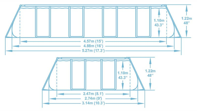 В остальном все бассейны серии Rectangular Frame Pools обладают всеми достоинствами бассейнов BestWay, выполняются из трехслойного армированного ПВХ, оснащаются каркасом из нержавеющей стали и в целом являются очень надежными и удобными бассейнами.
