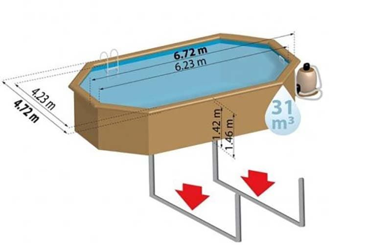 Овальный деревянный бассейн 672x472x146 см VERMELA GRE 790090
